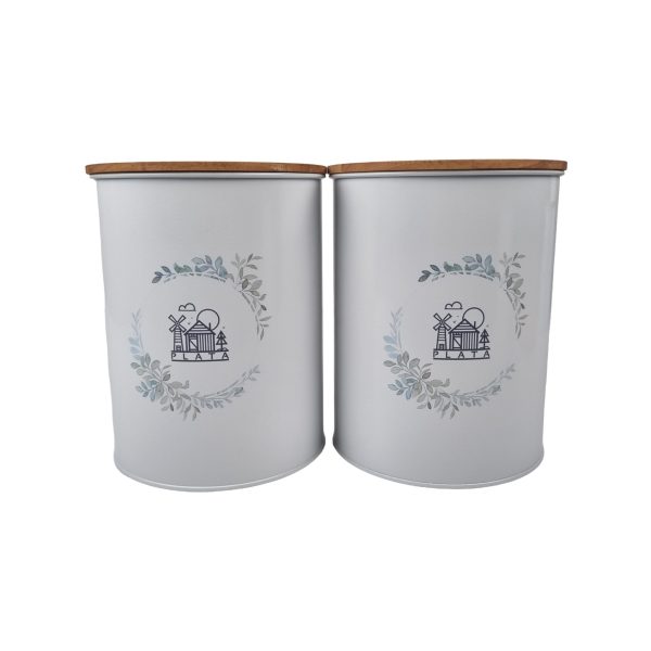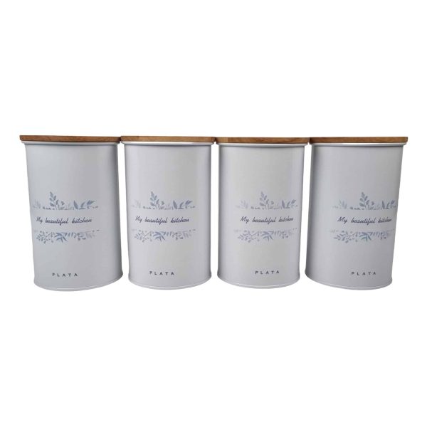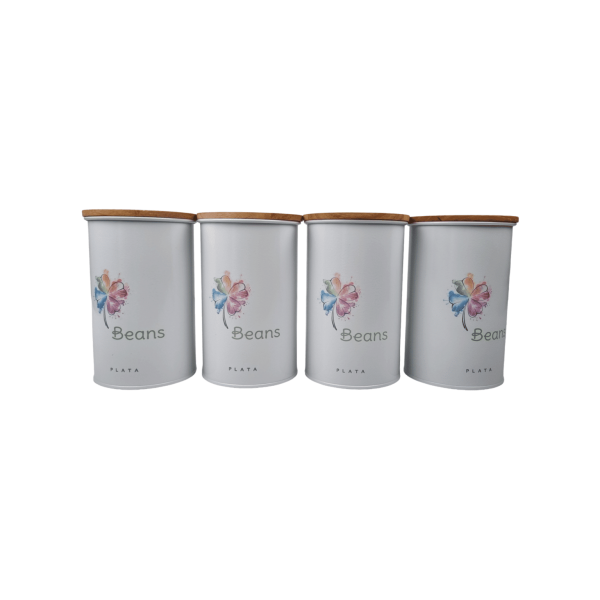 بانکه فلزی نگهداری حبوبات پلاتا با درب بامبو چفتی و ضد رطوبت، انتخابی حرفه‌ای برای نظم کابینت‌ها ست 4 عددی از زاویه رو به رو